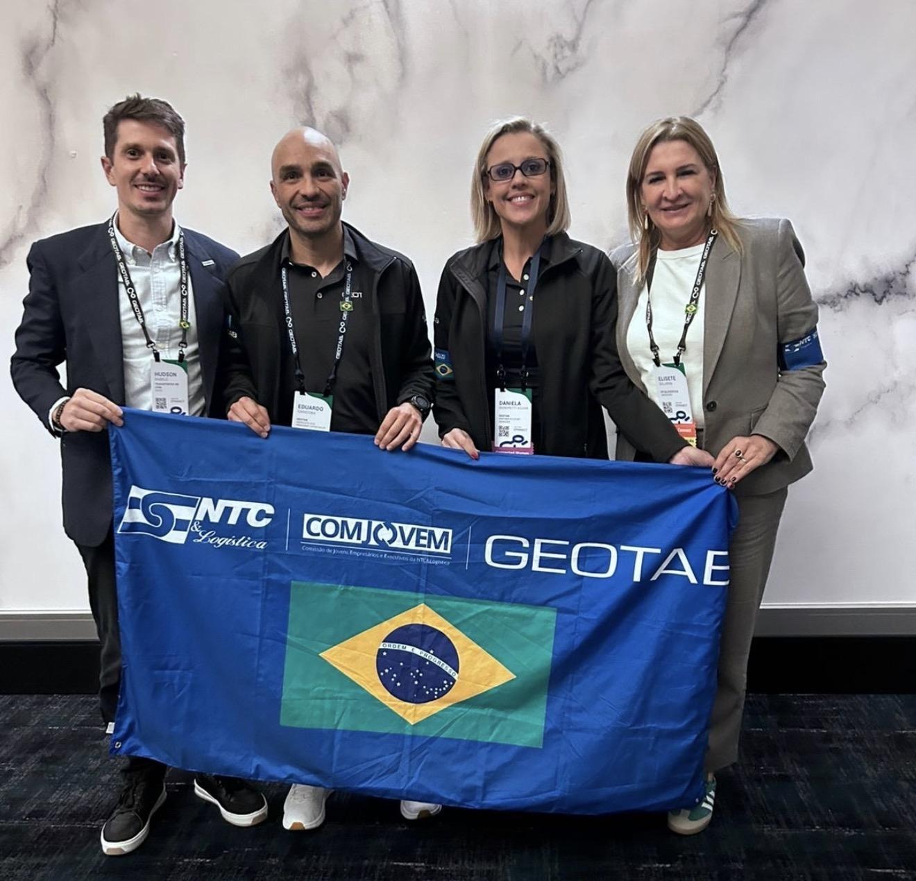 Da esquerda para direita: Hudson Rabelo, coordenador Nacional da COMJOVEM; Eduardo Canicoba, vice-presidente da Geotab Brasil; Daniela Signoretti, gerente de contas da Geotab Brasil e Elisete Balarini, assessora executiva da Presidência da NTC&Logística